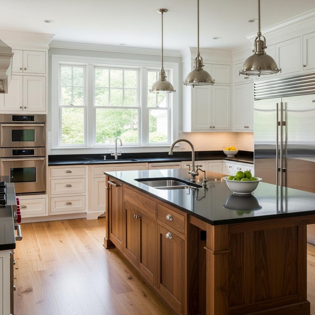 This approach also allows you to use pricier materials strategically. Splurge on walnut for your island while using painted cabinets elsewhere to balance the budget.