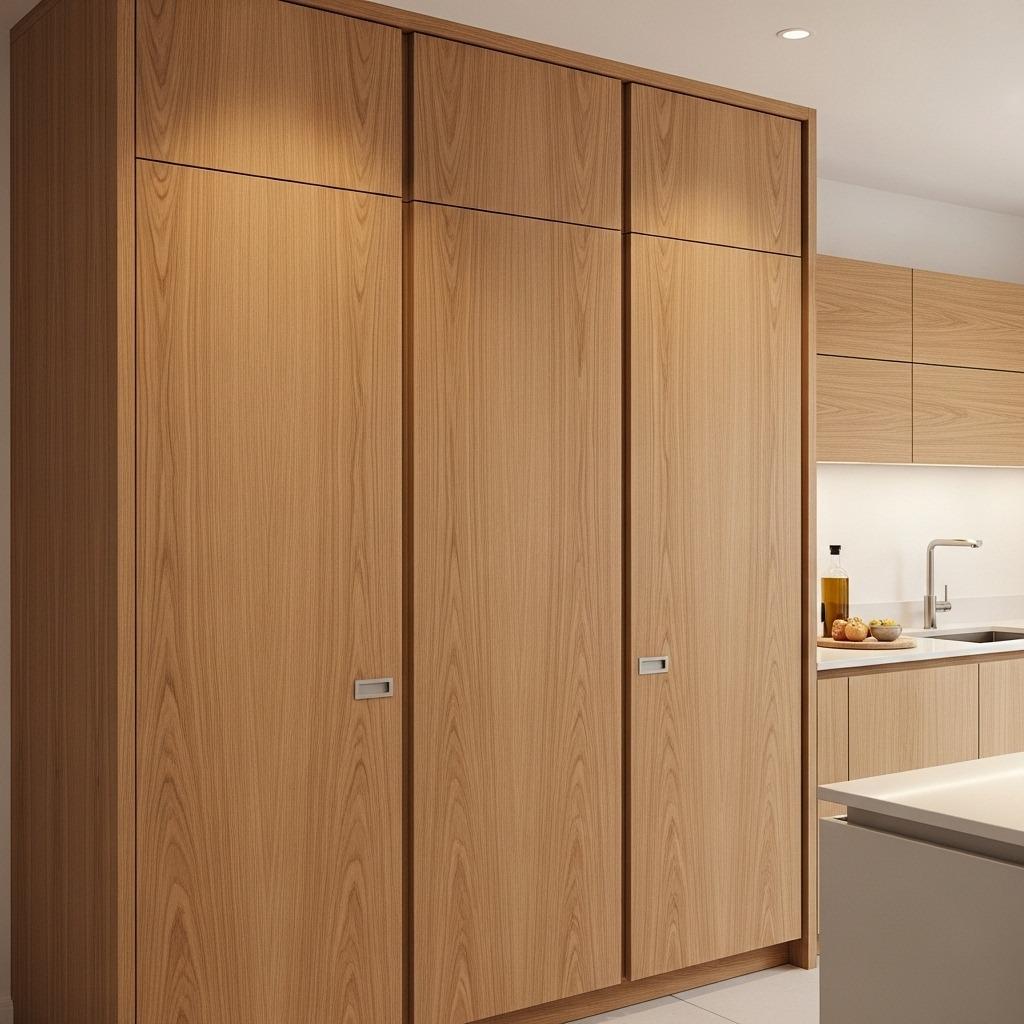 Running grain vertically makes cabinets appear taller and more elegant. It’s a subtle detail that creates a more custom, high-end look. This works especially well with rift-cut or quarter-sawn woods that have straight, consistent grain patterns.