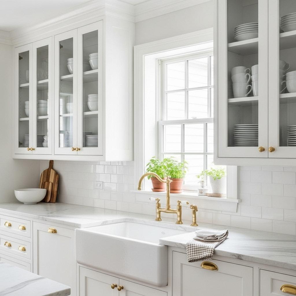 Glass-front cabinets offer the best of both worlds – they keep dishes dust-free while still putting your prettiest pieces on display. They’ve become a staple in modern kitchen cabinetry design.