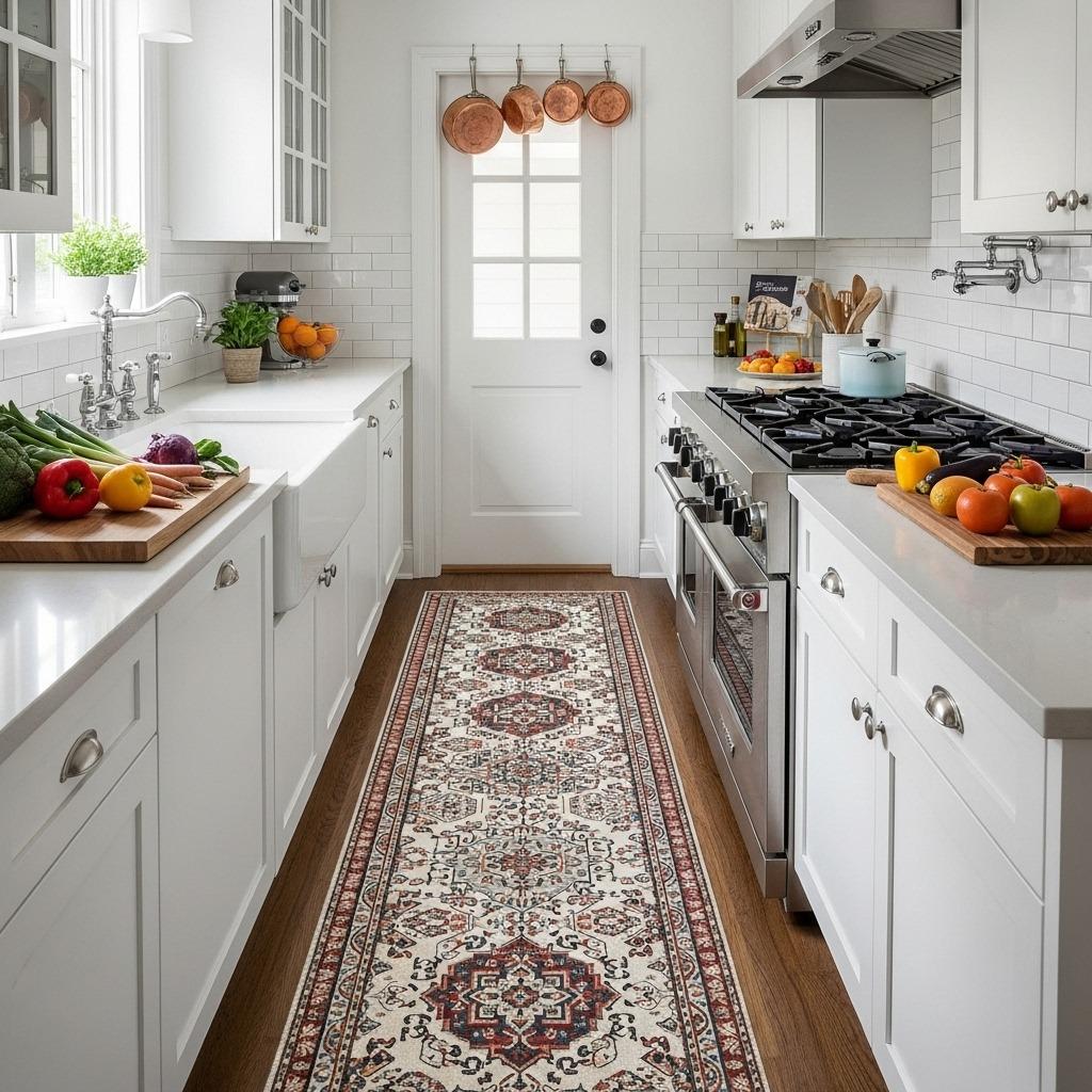 A well-chosen rug can completely shift the vibe of your kitchen – adding warmth to cold tile, defining zones in an open layout, or injecting personality into an otherwise neutral space. The trick is finding options that look beautiful but can also handle whatever your cooking adventures throw at them. Whether you’re drawn to vintage-inspired patterns, sleek modern designs, or something in between, the right kitchen rug creates that finished feeling that makes the whole room come together.
