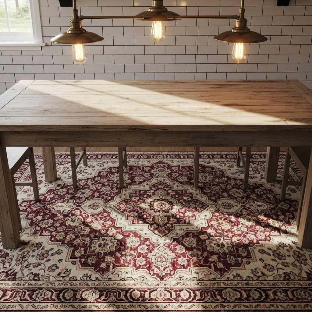 Vintage-style rugs bring an unexpected sophistication to kitchen spaces. Those intricate medallions and faded jewel tones add layers of visual interest that newer rugs simply can’t replicate. The beauty lies in their apparent imperfection – slightly worn patterns and muted colors that suggest stories and history.