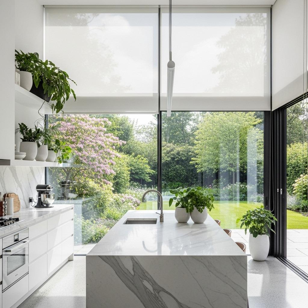 Window treatments in luxury kitchens tend toward minimal – you’ve invested in beautiful finishes, why hide them? When privacy or light control is needed, Roman shades in natural fabrics offer refinement without bulk. Plantation shutters work beautifully in traditional designs.