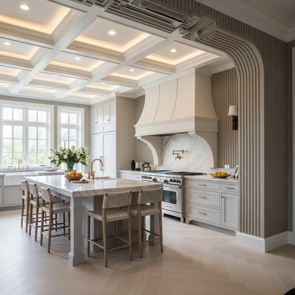 Coffered ceilings, decorative molding, and custom range hoods – these architectural elements give kitchens personality and gravitas. They’re the difference between a room that’s merely nice and one that feels important. A custom plaster range hood, for instance, becomes a sculptural focal point that sets the tone for your entire design.