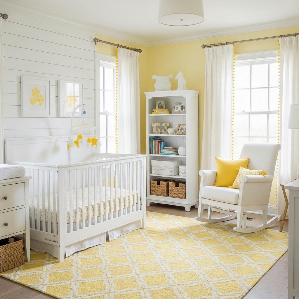 Sometimes the simplest combinations are the most effective. Pale yellow and white create a sunny, cheerful nursery that feels both modern and classic. Yellow is known for boosting mood and creativity, making it a thoughtful choice for your baby’s environment.