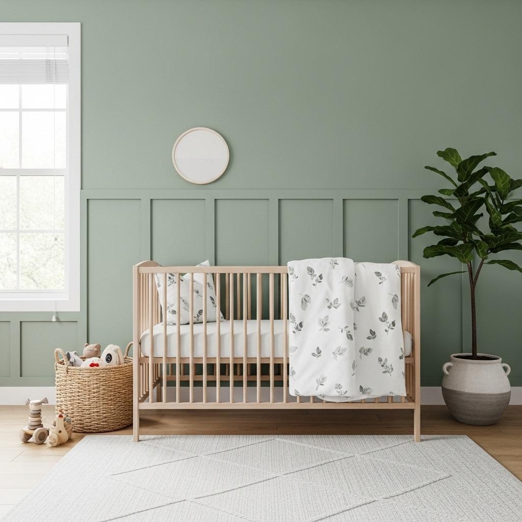 Sage green has become the star of modern nurseries, and honestly, it’s easy to see why. This soft, muted green brings the outdoors in without feeling too bold or overwhelming. It pairs beautifully with natural wood furniture and creates an organic, peaceful vibe that both babies and adults appreciate.