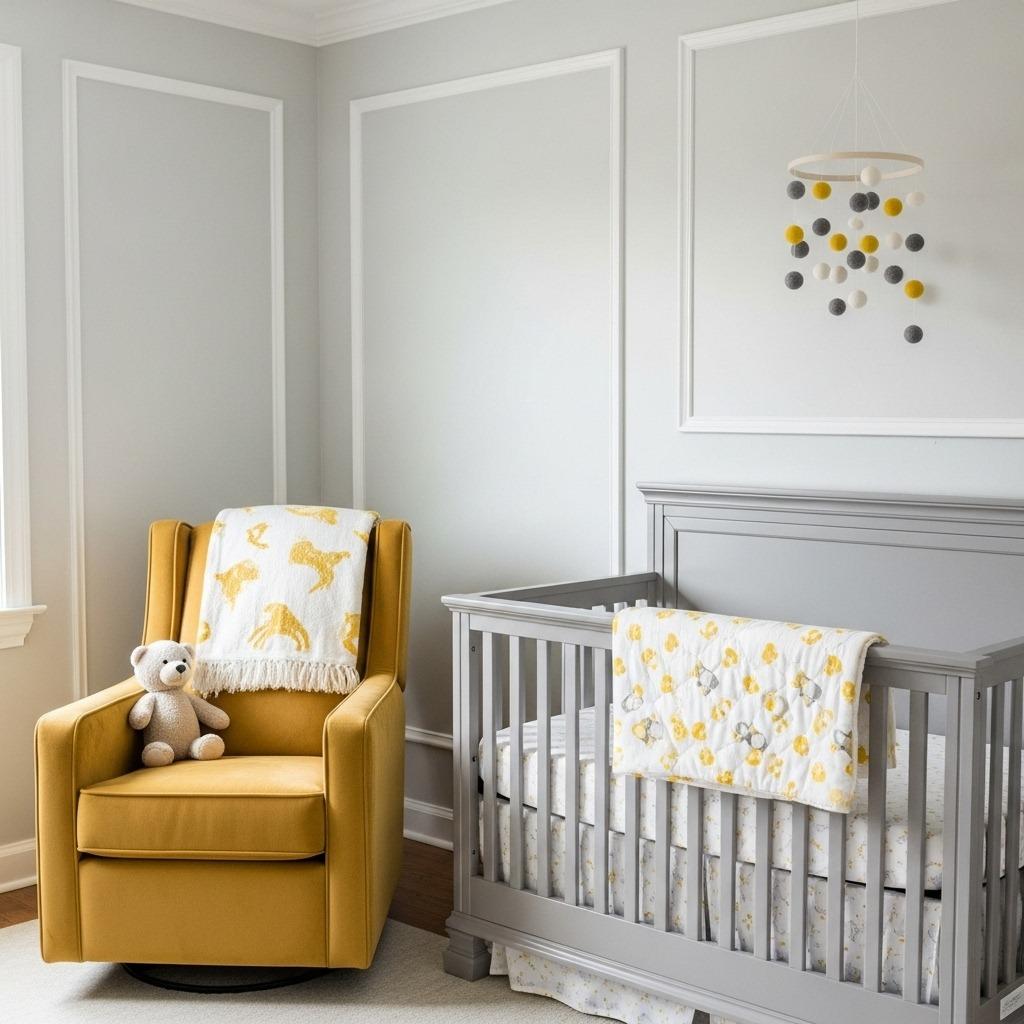 This combination also hides wear and tear better than stark white or very light colors, which is a practical consideration for a baby’s room. The colors have enough depth to feel intentional without being dark or heavy. Many parents appreciate this middle ground when designing their nursery.