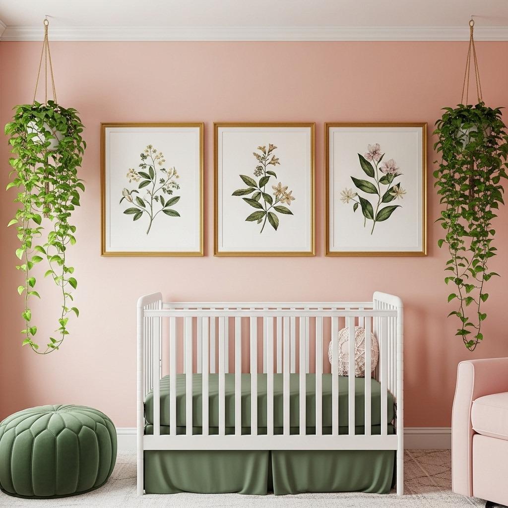 Forget everything you thought you knew about pink nurseries. When you pair blush pink with deep forest green, you get something totally unexpected and incredibly chic. This combination feels botanical and sophisticated, not babyish at all.