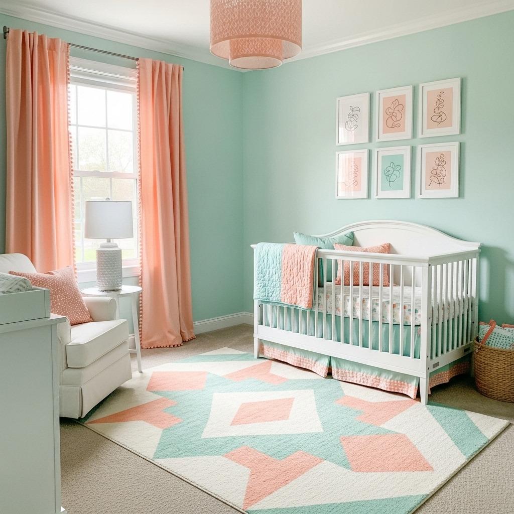 This color combination feels like a breath of fresh air, literally. Mint green and peach create a soft, dreamy atmosphere that’s perfect for a nursery. Both colors are light and airy, which helps smaller spaces feel more open and inviting.