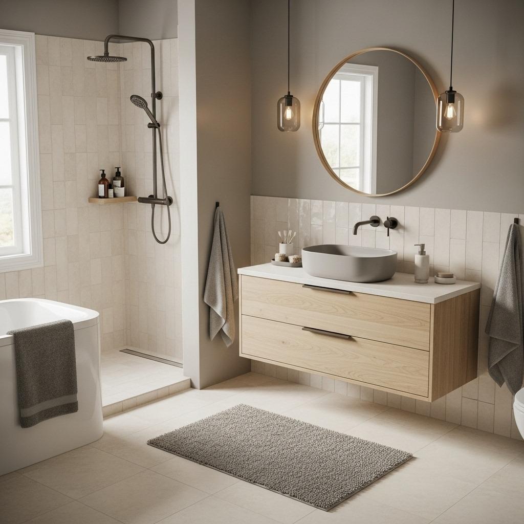 Mixing shapes prevents monotony. An all-rectangular bathroom can feel rigid, while too many curves might lack definition. The interplay between shapes creates visual conversation that keeps your eye moving around the space.