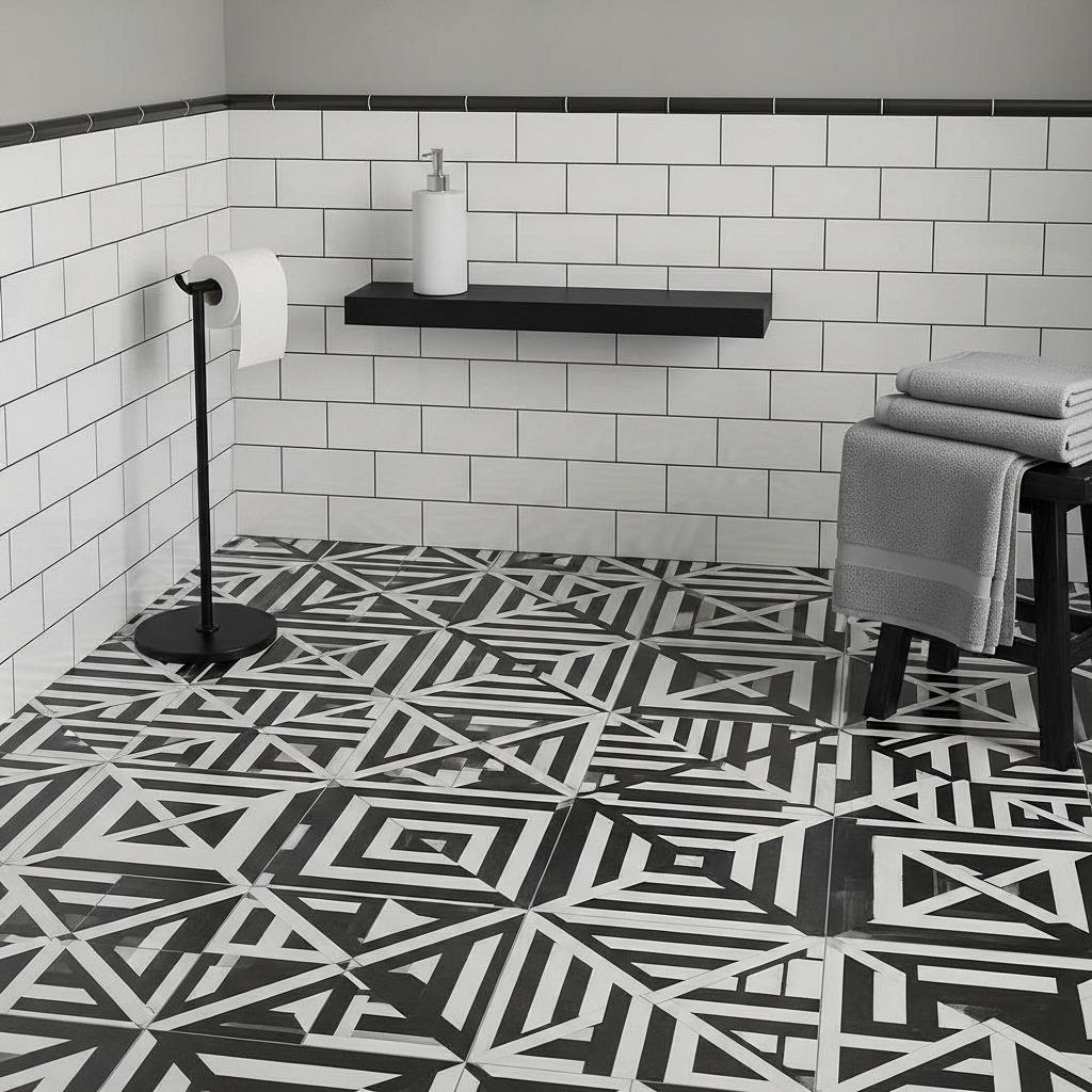 In classic black and white bathrooms, white grout with white tile and black grout with black tile keeps things crisp. But don’t overlook grey grout as a bridge option – it can unify mixed tile colors while adding subtle definition.