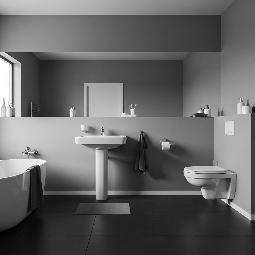In an all-grey bathroom, your darkest charcoal elements against your lightest dove grey surfaces create visual punctuation. These high-contrast moments draw the eye and define different zones within the space. Your shower area might be darker, your vanity lighter, establishing clear functional areas.