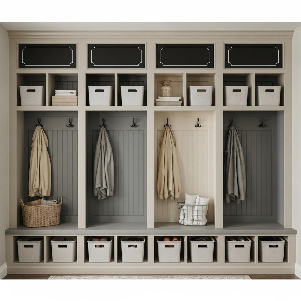 Assigning each family member their own designated cubby eliminates the “where’s my stuff?” morning scramble. Each person gets their own hooks, shelf space, and bin for keeping track of their belongings.