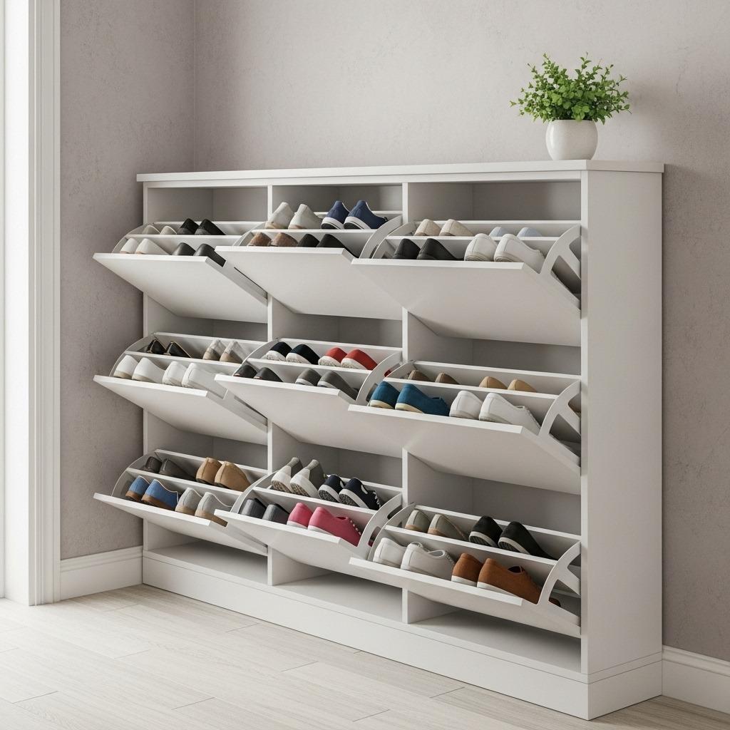 Traditional shoe racks can look cluttered and take up valuable floor space. Tip-out shoe cabinets provide a streamlined alternative that keeps footwear organized and hidden from view.