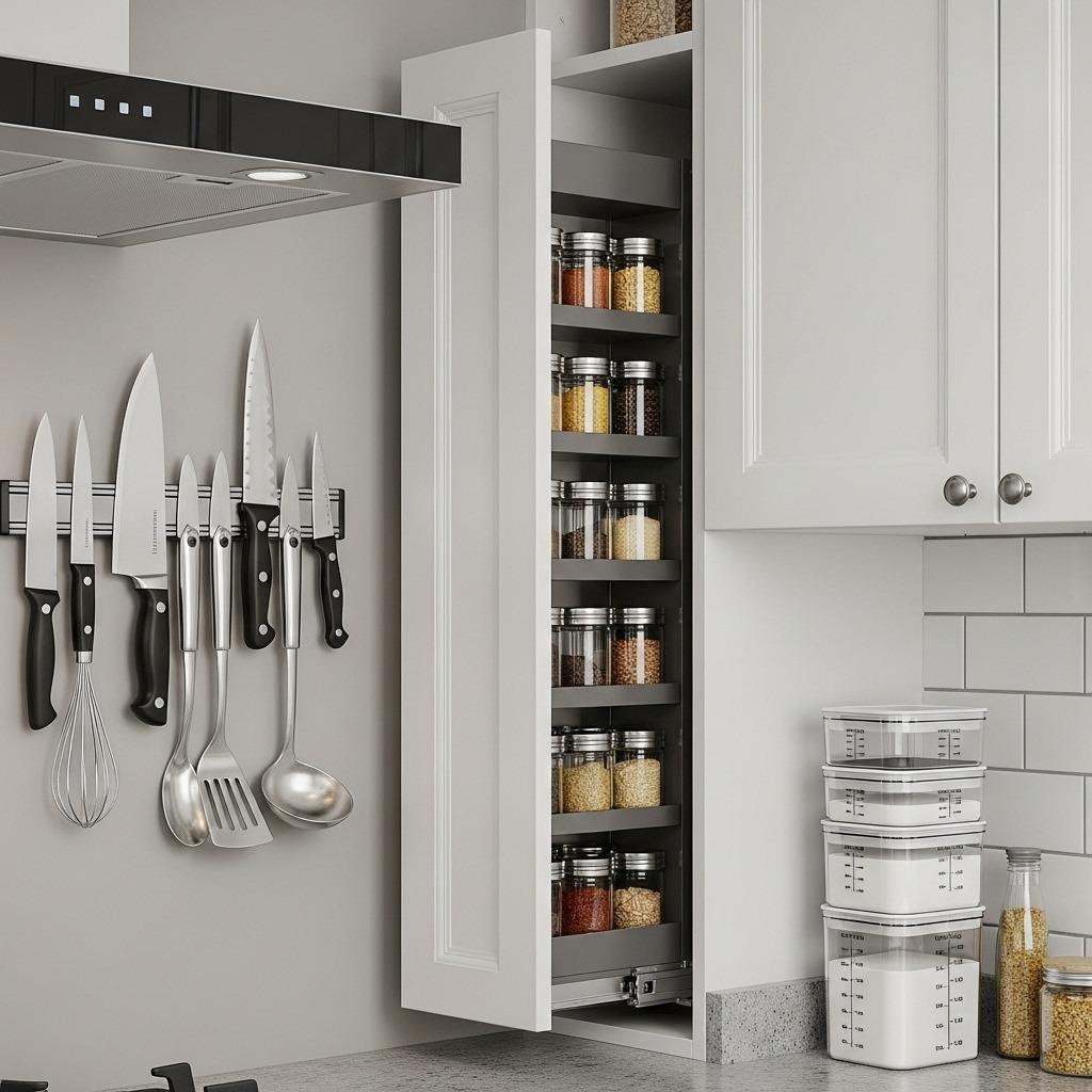 The back of your lower cabinets might as well not exist. You can’t see what’s back there, can’t reach it without kneeling, and inevitably forget about items until they expire. Pull-out organizers transform that frustrating dead space into accessible storage.