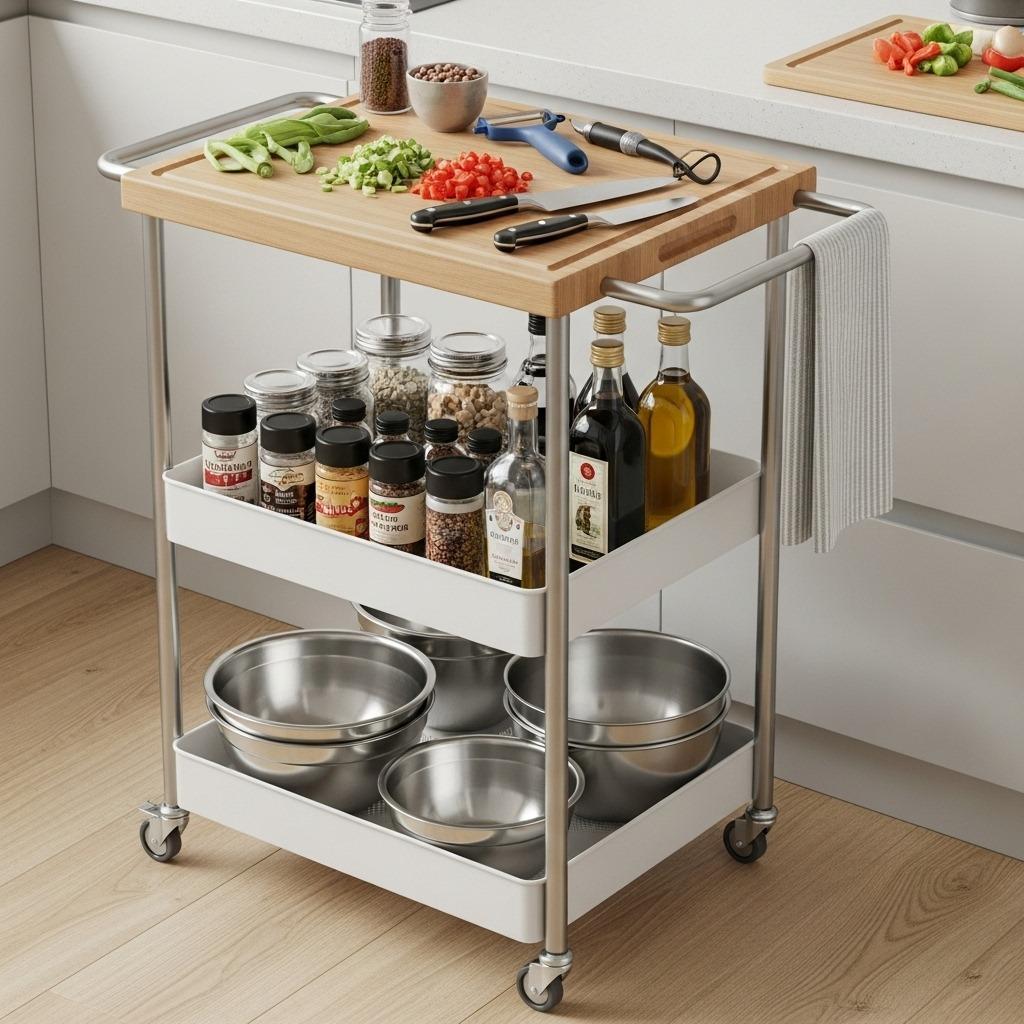 Rolling carts might seem basic, but choosing the right one changes how you cook. The best ones have different-sized tiers that accommodate various items without wasting vertical space. Look for carts with at least one flat surface large enough for actual food prep.