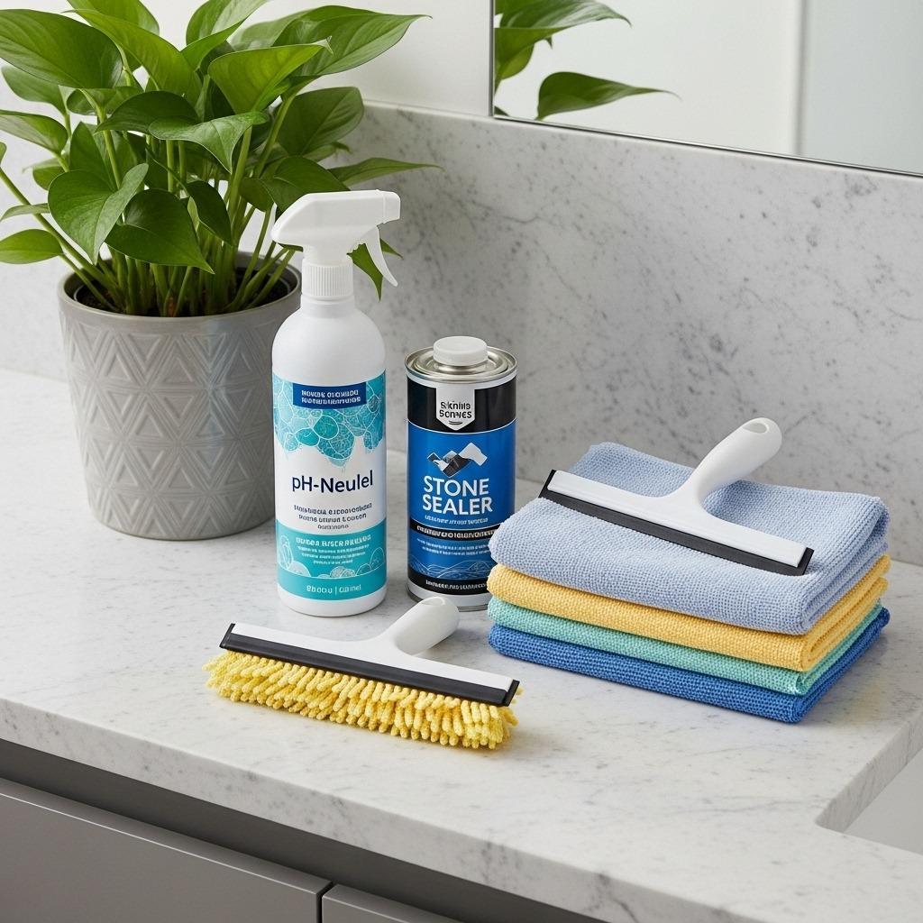 Daily maintenance is surprisingly simple. A soft microfiber cloth and pH-neutral cleaner handle routine cleaning without damaging stone. Avoid acidic cleaners, abrasive scrubbers, or anything that promises to “cut through soap scum” – those products often contain chemicals that etch or dull stone surfaces.