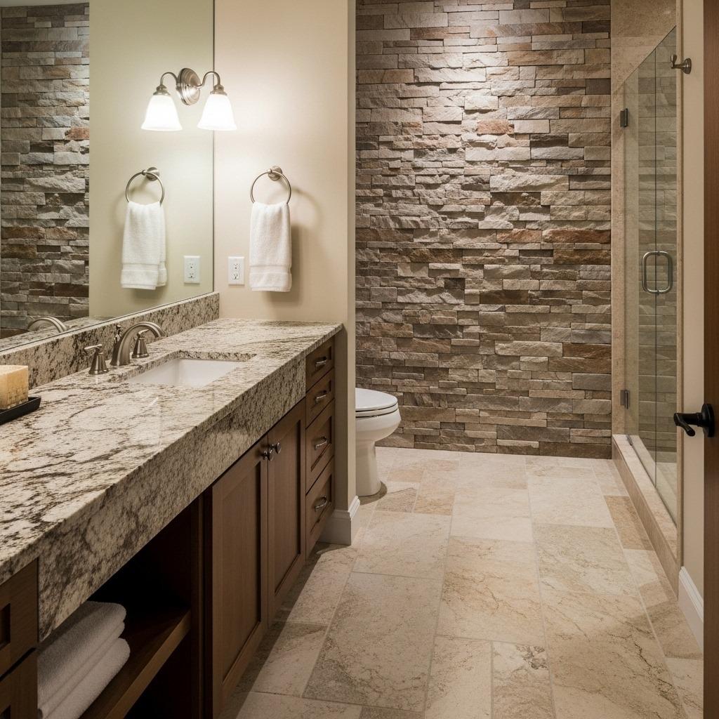 Consider stone for high-impact, high-visibility areas only. A gorgeous stone vanity top and matching backsplash might be your entire stone budget, and that’s perfectly fine. Pair stone accents with simpler painted surfaces rather than trying to stone everything.