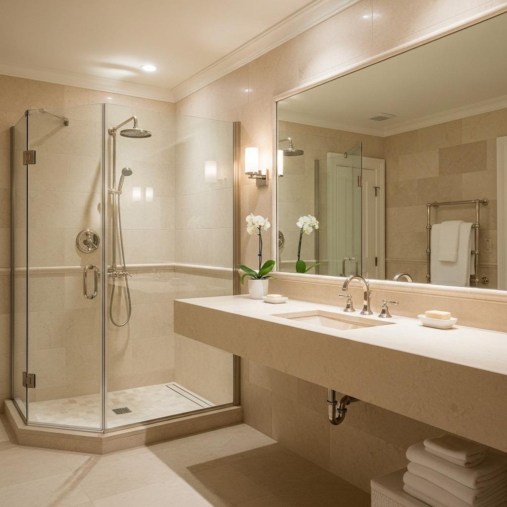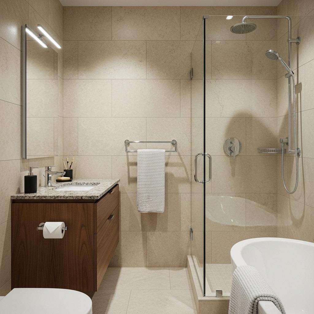 Prioritize where stone appears. Splurge on a stunning natural stone vanity top where you interact daily, then use high-quality stone-look porcelain elsewhere. Today’s porcelain convincingly mimics natural stone at a fraction of the cost, and only careful inspection reveals the difference.
