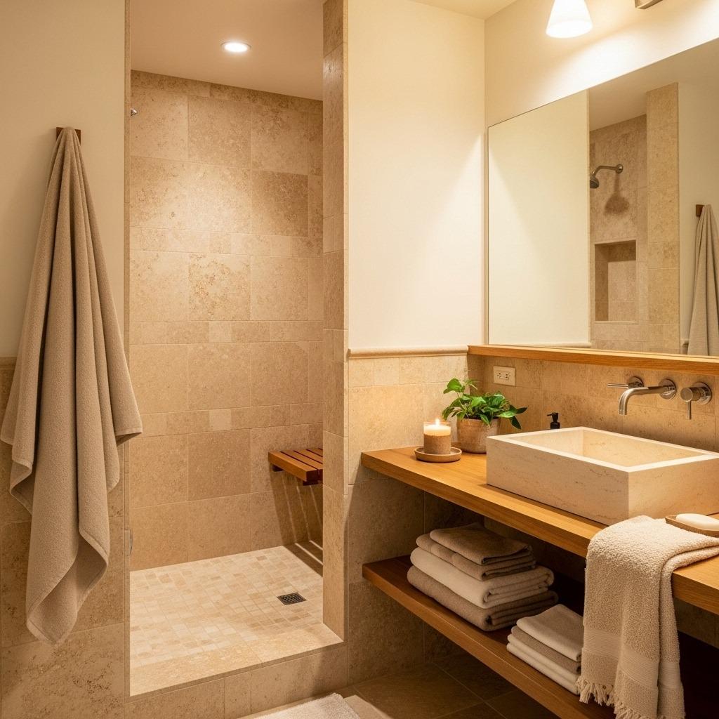 One of travertine’s superpowers is its ability to unify a space. Using the same stone on floors, walls, and even a custom vanity creates this seamless, enveloping feeling that’s incredibly soothing. It’s a trick often used in minimalist bathroom design to eliminate visual clutter.