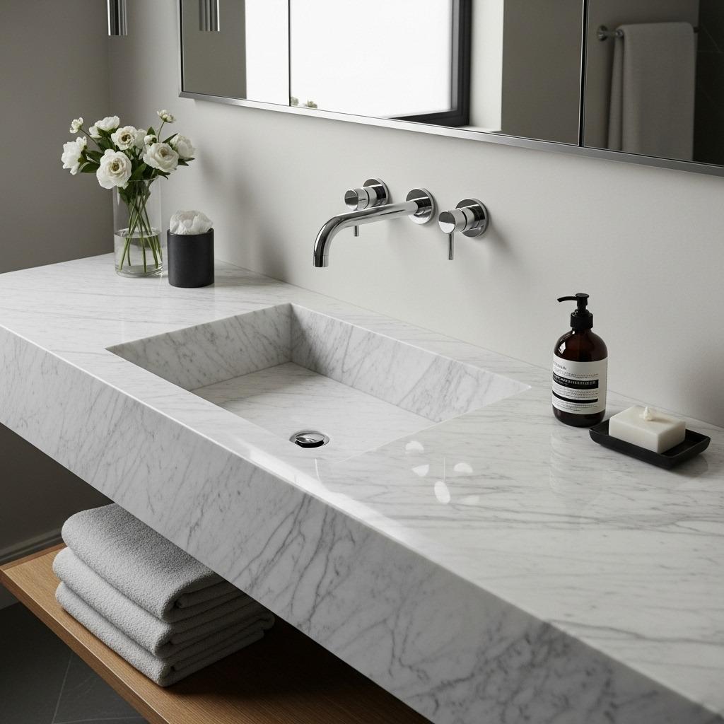 Consider your stone selection carefully for vanity tops. High-traffic, high-moisture surfaces benefit from harder, less porous stones like granite or quartzite. Save softer marbles and limestones for less demanding applications unless you’re committed to diligent maintenance.