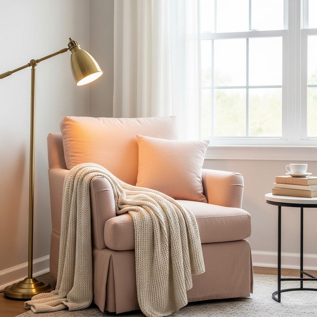 Start with a comfortable chair – maybe a vintage accent chair reupholstered in a soft linen, or a modern armchair in a complementary pastel. Add a small side table for your drink and current read. This doesn’t need to be matchy with your other furniture; in fact, a slightly different style adds character.