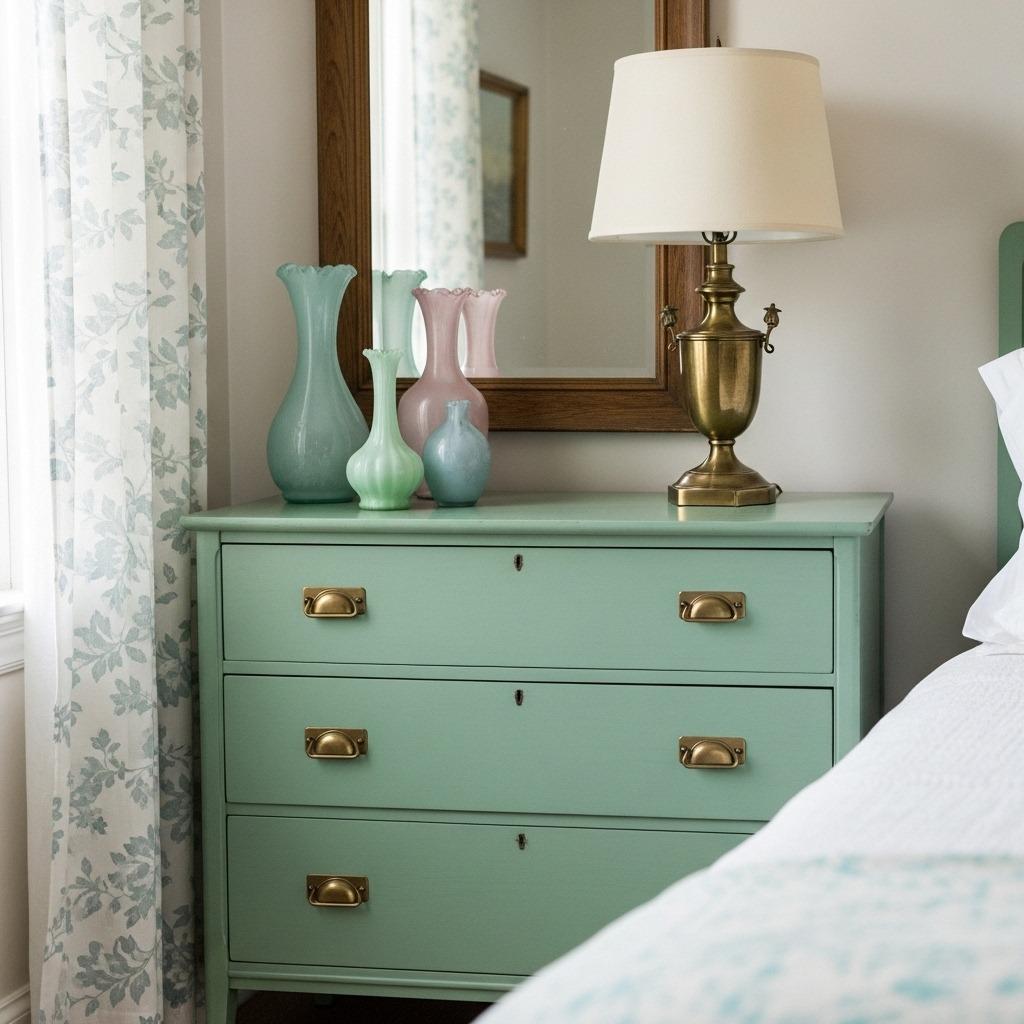 Don’t overlook vintage accessories. Old glass vases, ceramic lamps, decorative mirrors, or picture frames from decades past often feature beautiful pastel glazes and finishes you can’t find today. These pieces become conversation starters and give your bedroom unique character that’s impossible to replicate.