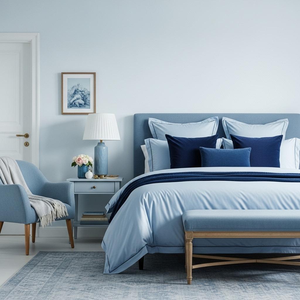 This technique works beautifully because it mimics how light naturally creates shadows and highlights in a room. The variation gives your eye something to explore without introducing competing colors. It’s restful yet interesting – exactly what you want in a bedroom design.