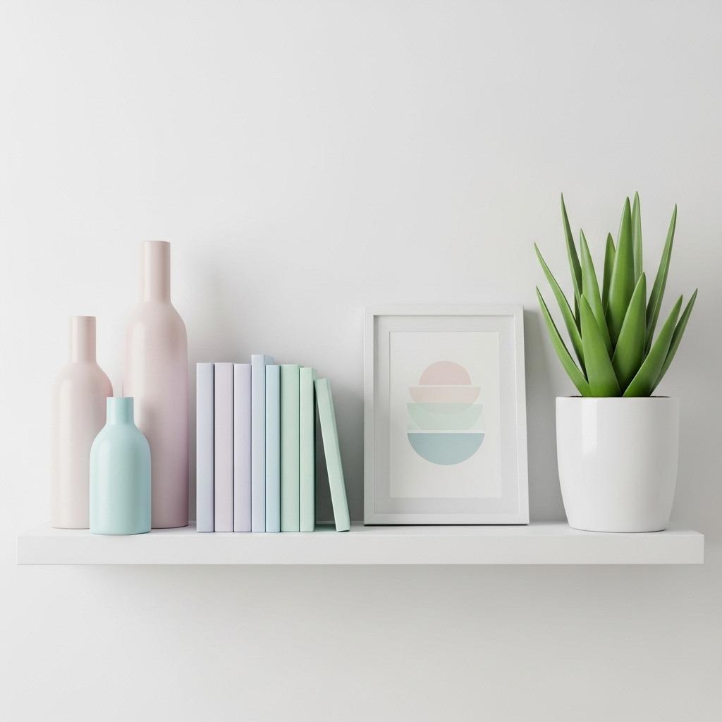 Color-coordinated book spines make surprisingly beautiful displays. If you have books with pastel covers or spines, arrange them by color on open shelves. Intersperse with small decorative objects in complementary pastels. This looks intentional without feeling staged.