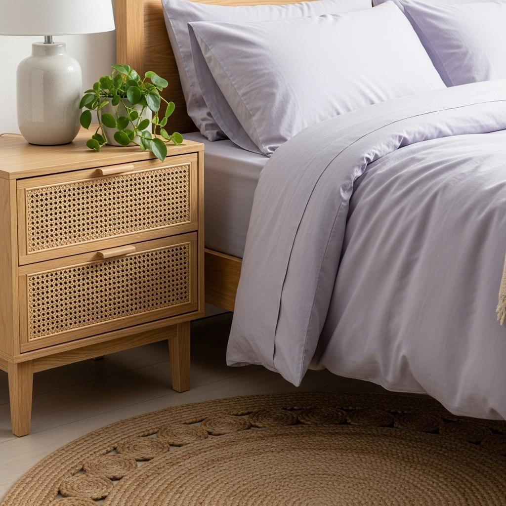 Pastels can sometimes feel like they’re floating if you don’t anchor them with natural materials. Wood, rattan, linen, and jute all provide the grounding that keeps a pastel bedroom from feeling too precious or overly sweet.