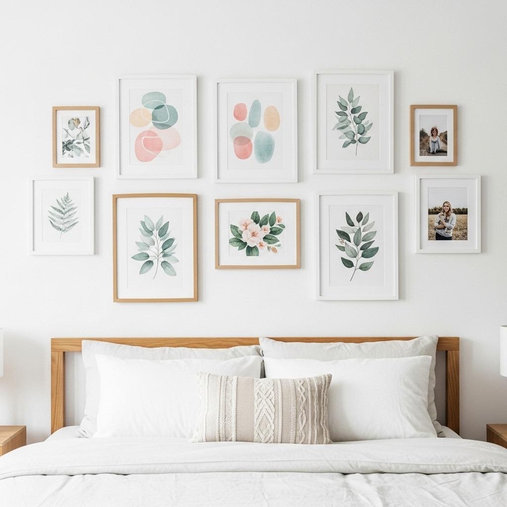 Bare walls can make even the prettiest bedroom feel unfinished. Artwork in pastel tones ties your color scheme together while adding personality. The trick is choosing pieces that feel intentional rather than matchy-matchy.