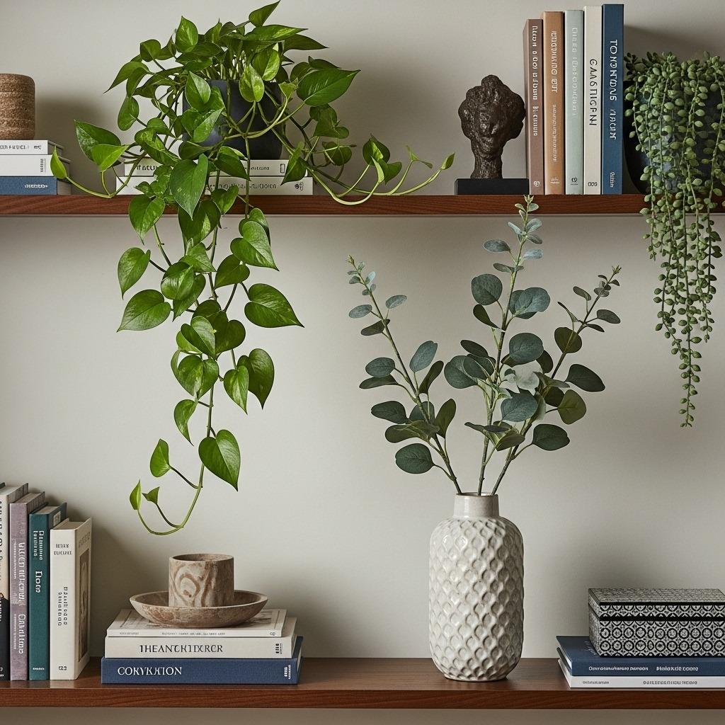 The trick is mixing them with real plants so the faux ones blend in. Place faux plants in low-light areas or high-up spots that are hard to water, and keep your real plants where you can easily care for them. Good faux plants have realistic textures and natural color variations – cheap plastic-looking ones will always read as fake no matter where you put them.