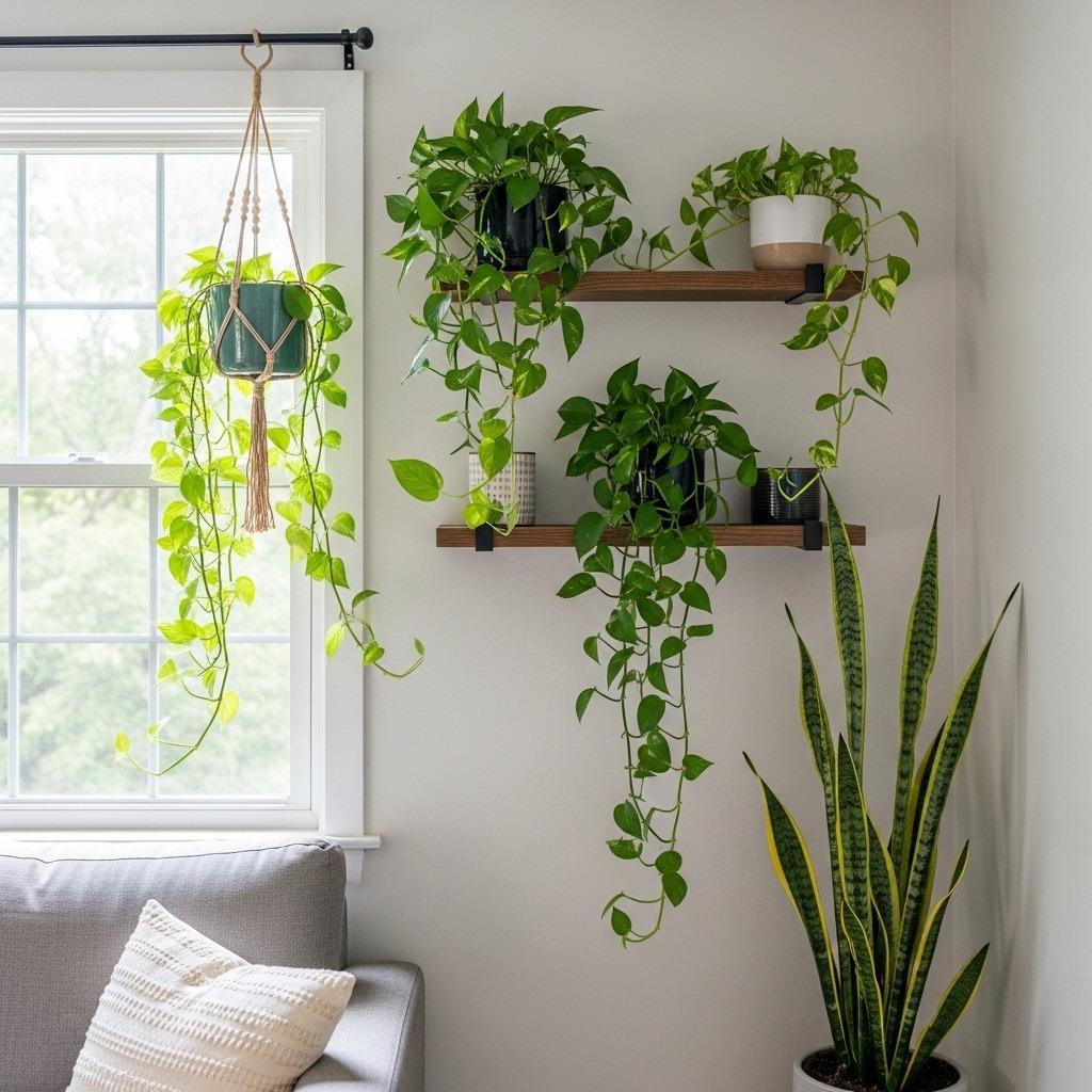 You don’t need to drop hundreds at a fancy plant boutique to create a lush living room. Start with easy, affordable plants like pothos, snake plants, or spider plants from your local nursery or even the grocery store. These workhorses cost $10-20 and will grow like crazy with minimal care.