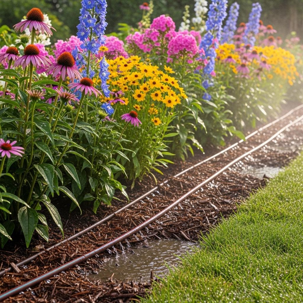A good layer of mulch is like insurance for your watering efforts. It keeps soil cool, blocks evaporation, and means you can water less frequently without stressing plants.