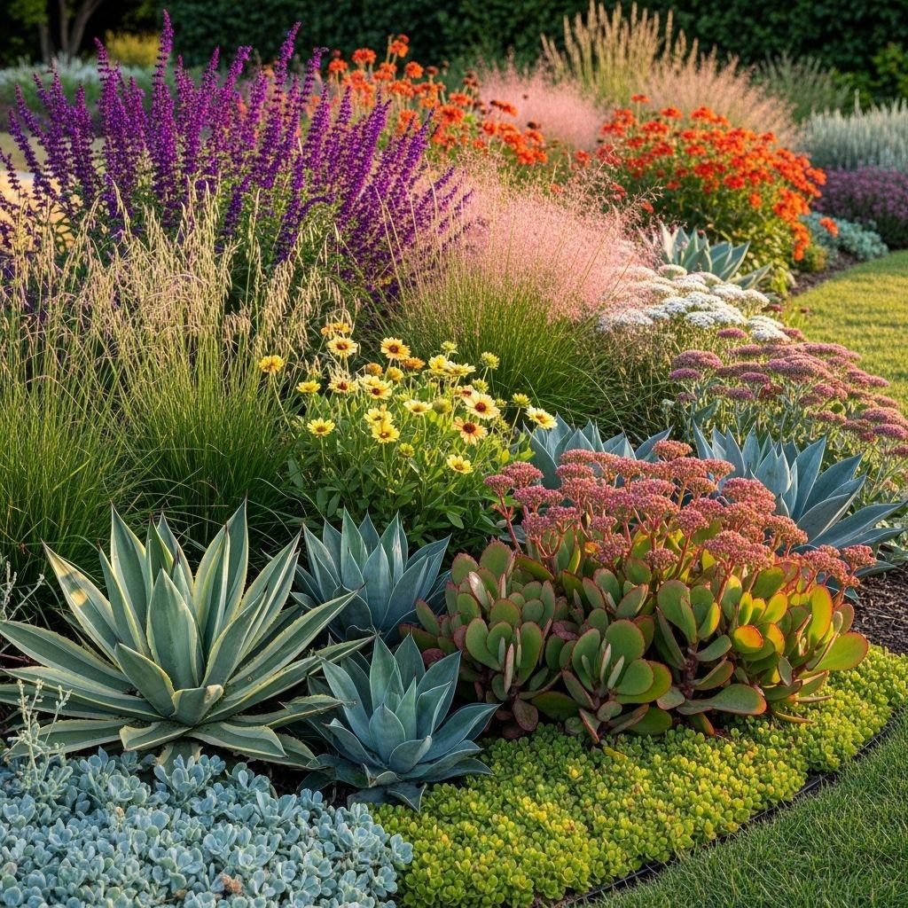 Combining succulents with other drought-resistant plants creates gardens with varied heights, textures, and seasonal interest. Native ornamental grasses, lavender, Russian sage, and other low-water perennials complement succulent forms beautifully.
