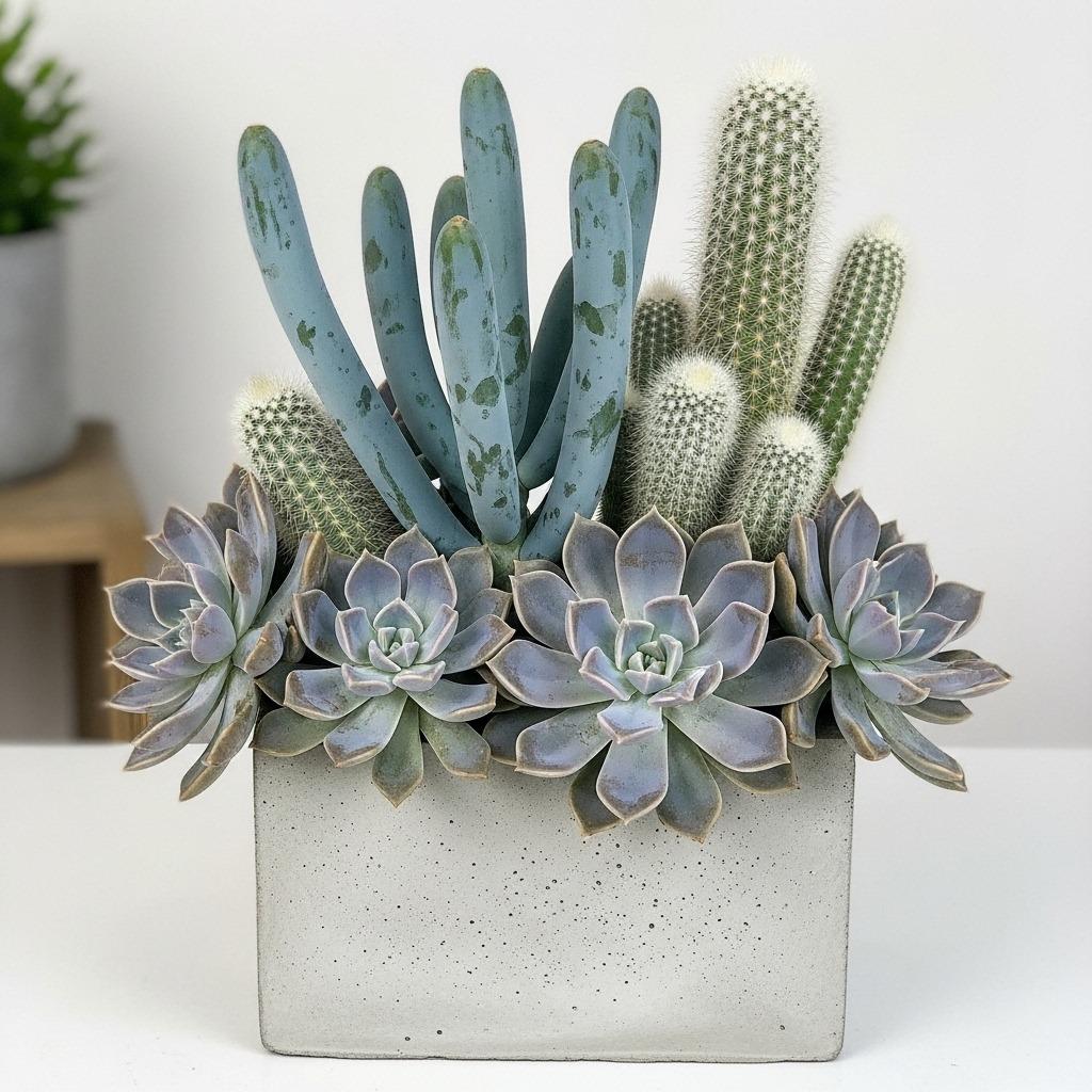 Sometimes limiting your color palette creates more impact than using every shade available. A monochromatic succulent garden using blues, silvers, and grays looks sophisticated and modern – similar to how monochrome living room designs create cohesive, calming spaces.