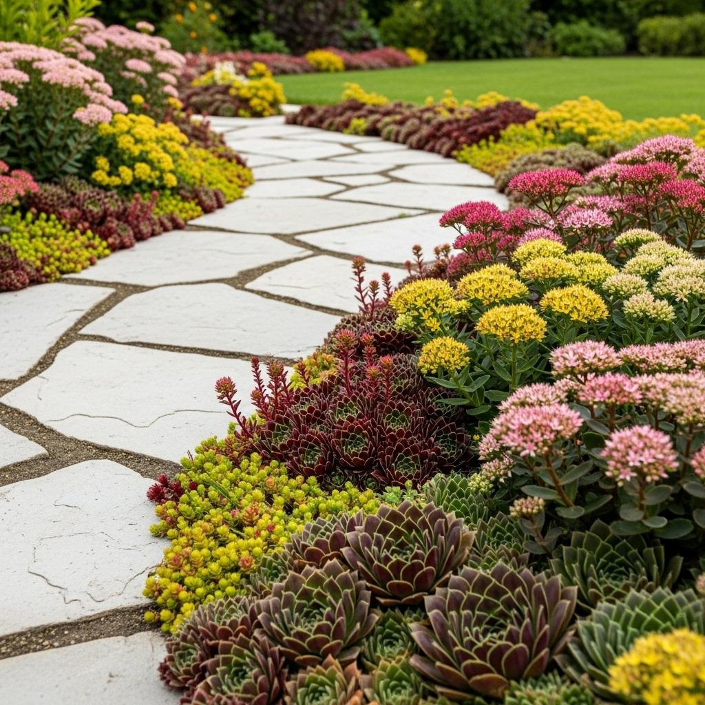 If you’re tired of mowing or dealing with brown patches, certain succulent varieties can replace traditional grass altogether. Sedum varieties, ice plant, and some sempervivum species spread to create dense, colorful ground covers that need a fraction of the water lawns demand.