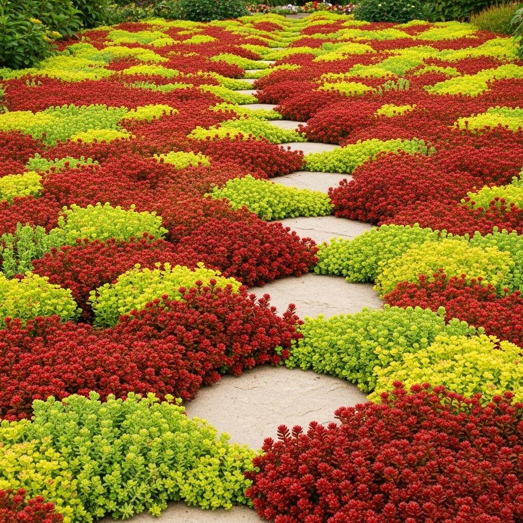 The color variation is remarkable. Some sedums turn brilliant red or orange in cooler weather, while others maintain green tones year-round. Planting multiple varieties creates a tapestry effect that shifts with seasons.