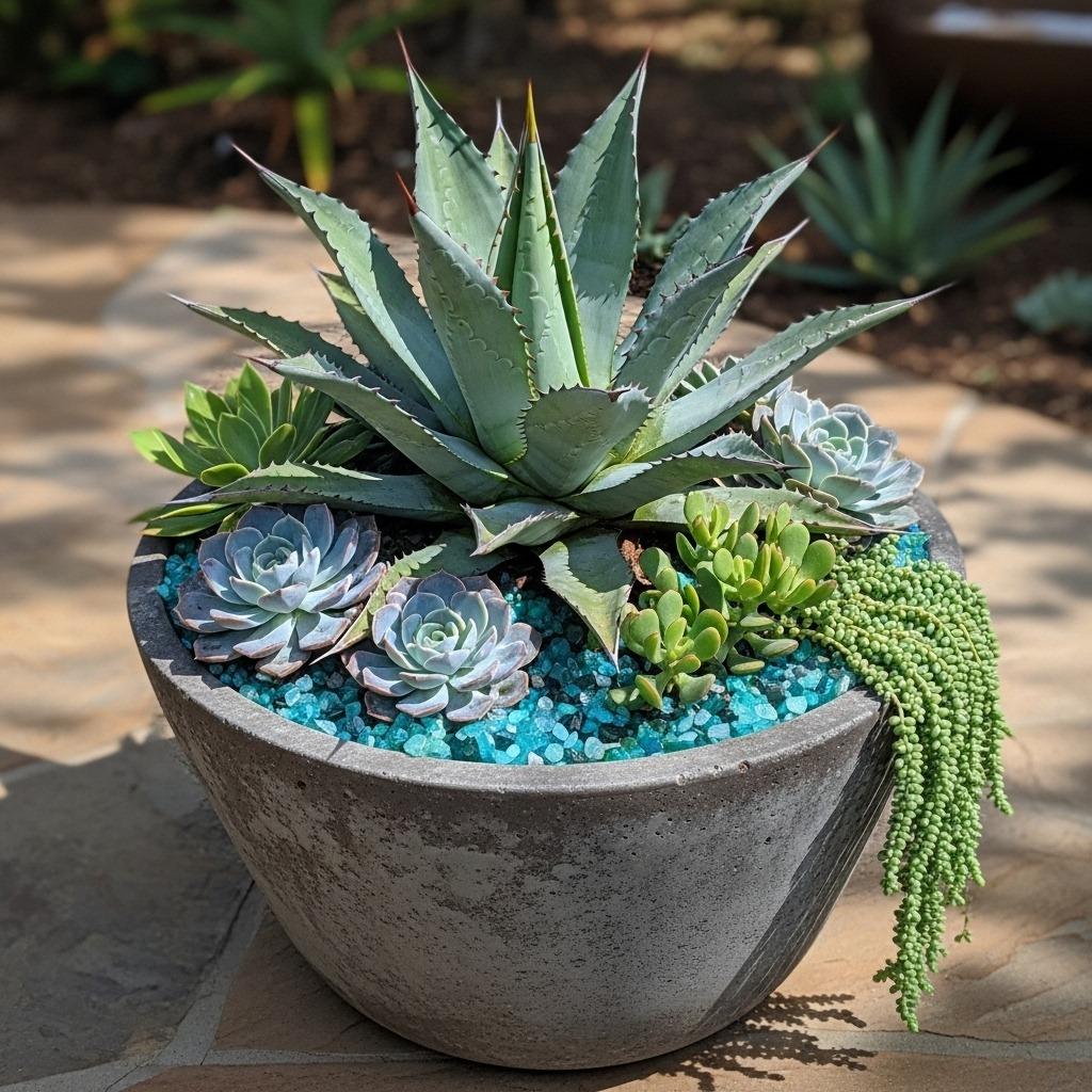 Sometimes one dramatic plant deserves to be the star. Large agave, aloe, or columnar cacti create architectural statements in container gardens, especially when surrounded by smaller, complementary succulents that don’t compete for attention.