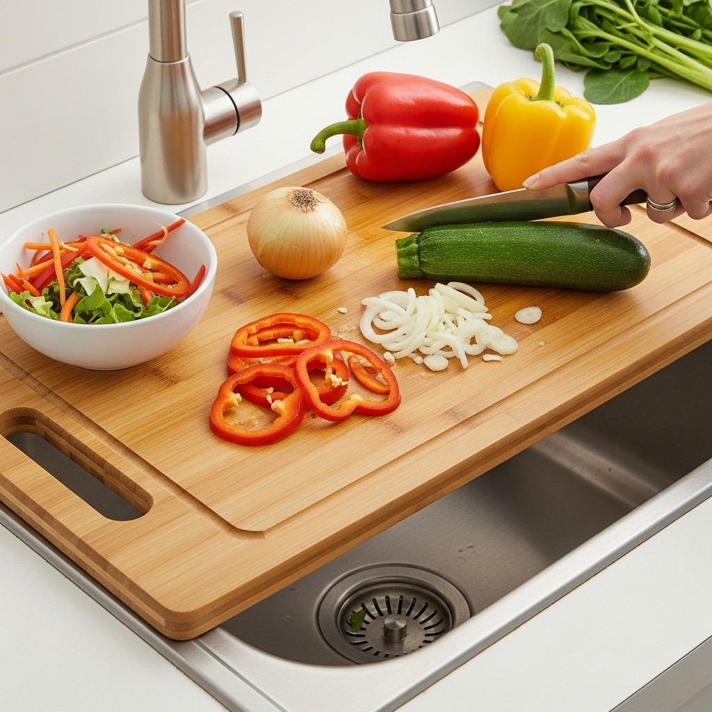 Make sure to measure your sink dimensions carefully before buying. You want a board that sits securely without wobbling. Bamboo options are lightweight and naturally antimicrobial, while plastic ones are usually dishwasher safe. Some even come with built-in colanders or collapsible features for even more functionality in your kitchen and dining area.