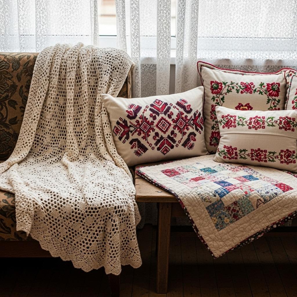 Embroidered pillows, crocheted throws, and needlepoint cushions add handmade charm. Hunt for these at estate sales where they’re often undervalued. Even pieces with minor damage can be repaired or incorporated into your decor in ways that hide imperfections.