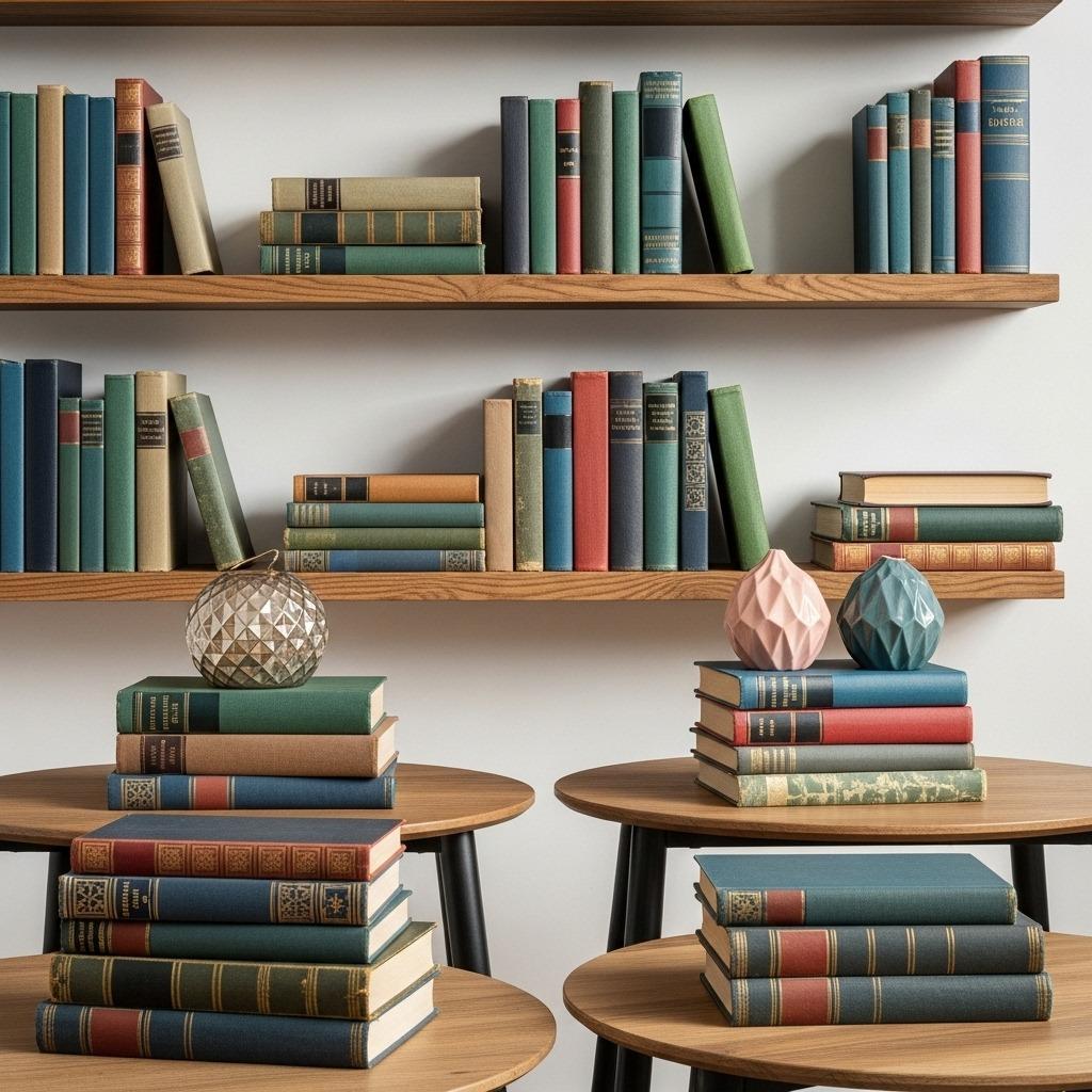 Books aren’t just for reading – vintage volumes double as decor. Arrange them by color for rainbow shelves, or by size for a more traditional library feel. Remove dust jackets to reveal beautiful cloth covers underneath, or leave them on for that authentic vintage bookstore aesthetic.