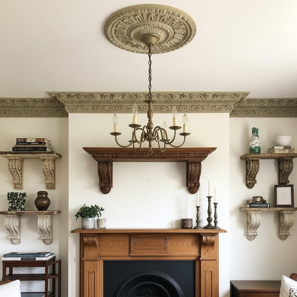 Architectural salvage yards hide treasures that transform ordinary rooms. Vintage corbels become unique floating shelves. Old fireplace mantels add focal points even without functioning fireplaces behind them. Ceiling medallions draw eyes upward while adding ornate detail modern construction rarely includes.