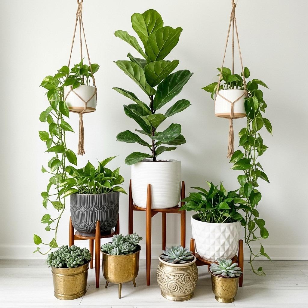 Plant stands deserve revival. Those tiered metal stands or wooden tripod holders elevated plants both literally and as decorative elements. They work especially well in corners that need vertical interest or near windows where plants get optimal light.