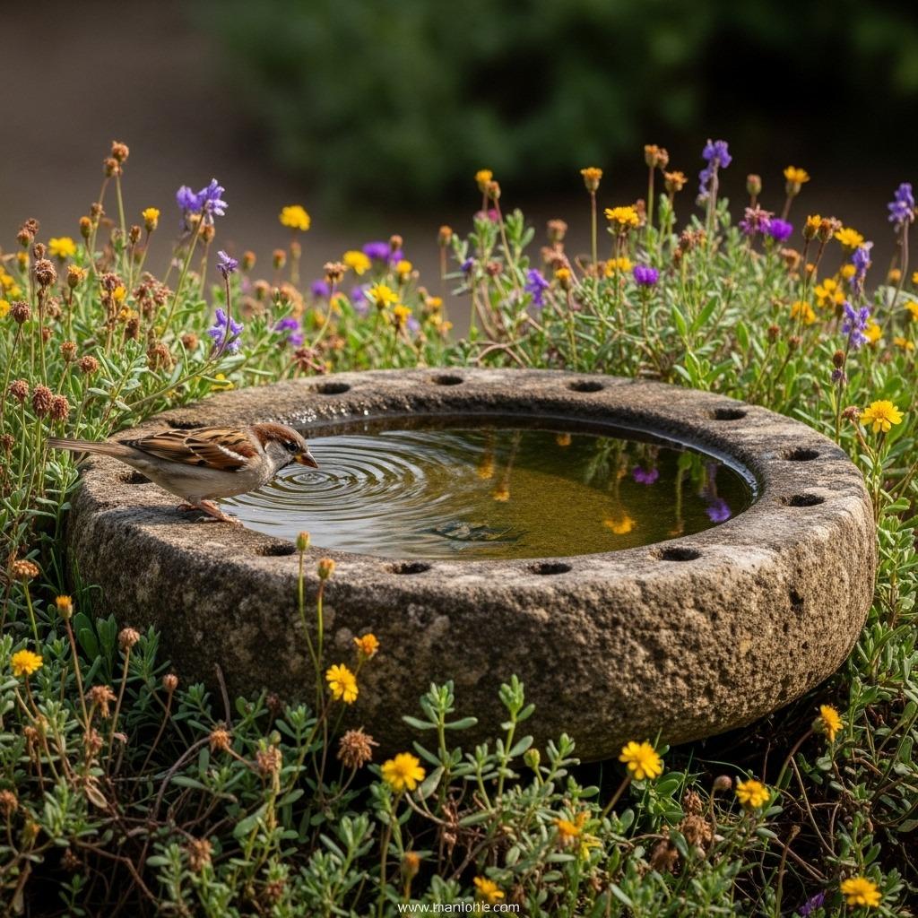 Position your water feature in a spot where birds feel safe, ideally near shrubs or trees where they can perch and scout for predators. A few flat stones placed in the water give smaller creatures a safe place to land and drink without the risk of drowning.