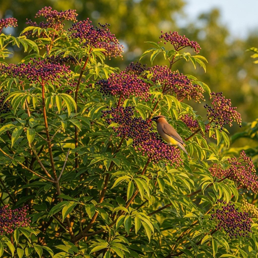 These shrubs provide food when it’s most needed, especially during migration periods and harsh winter months when other food sources are scarce. Many berry shrubs also offer dense branching that serves as excellent nesting sites and protective cover.