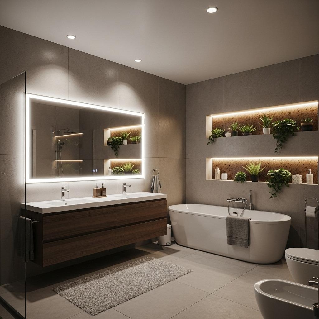 What I love about backlit mirrors is how they serve double duty. They provide essential task lighting while also acting as a stunning design element that makes your bathroom ideas feel more upscale. The gentle glow adds warmth without overwhelming the space.