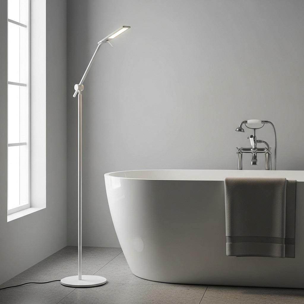 While most bathroom lighting is fixed in place, don’t overlook the potential of portable options. A moisture-resistant floor lamp near your bathtub provides focused light for reading without the need for electrical work. Adjustable task lights can be positioned wherever you need extra illumination.