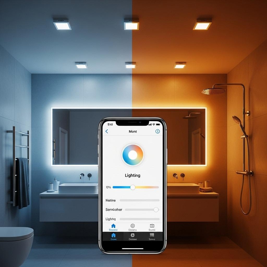 Smart bathroom lights have completely changed how we approach windowless bathroom lighting. These bulbs let you adjust brightness and color temperature throughout the day, mimicking the natural progression of sunlight. Cool, energizing light in the morning, warm, relaxing tones in the evening.